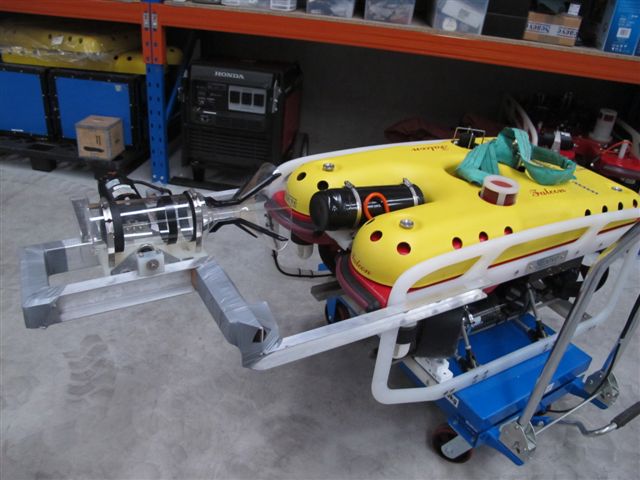 An aluminum frame was constructed, which was then attached to the front of the ROV, approximately 30cm in front of the ROVs camera. Then a 180-degree tilt unit was fitted, which was controlled from the surface. The gas collector was connected to the tilt unit allowing the ROV pilot full control of the